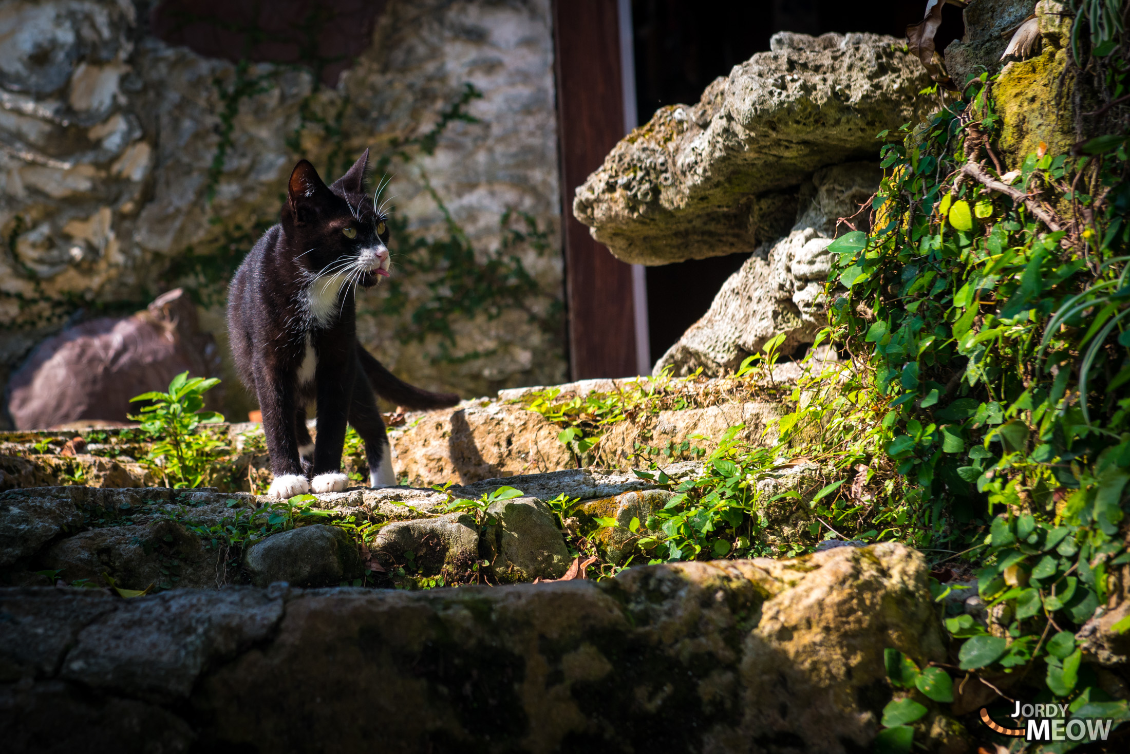 We take a slow-pace stroll, walking on the limestone blocks, following the paths that squeeze through and throughout the heights of Tsuboya. There are some pottery shops where we can stop by and do our own creations. There is also, interestingly, some cute cats wandering in front of a soba restaurant… very cute! Mandatory break.